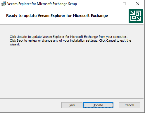 13.Click Update on the Ready to update Veeam Explorer for Microsoft Exchange page.
