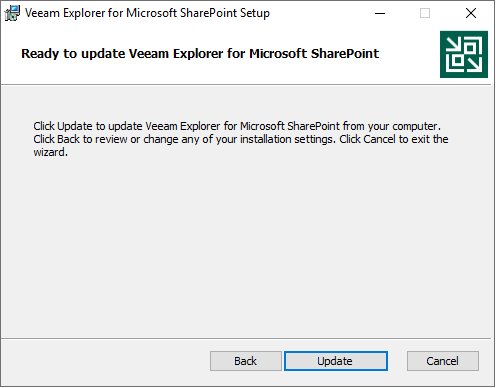 18.Click Update on the Ready to update Veeam Explorer for Microsoft SharePoint page.