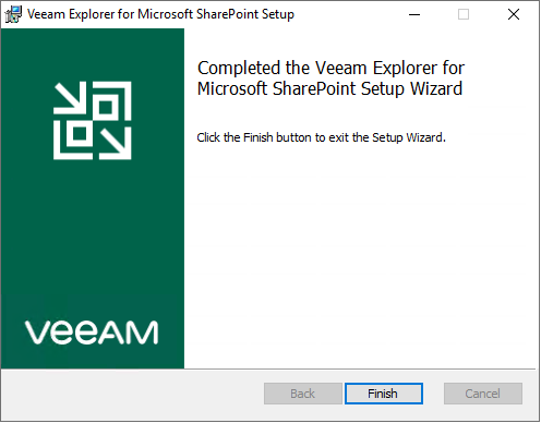 19.Click Finish on the Completed the Veeam Explorer for Microsoft SharePoint Setup Wizard page.