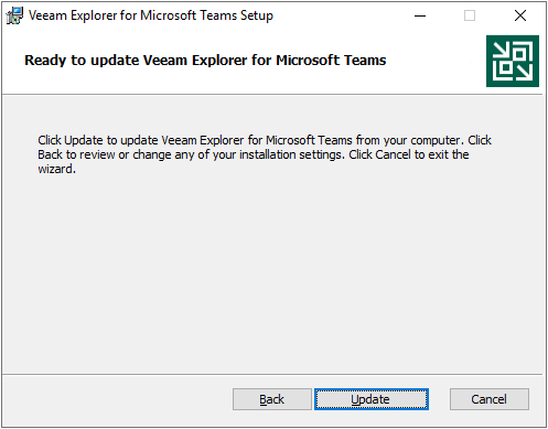 23.Click Update on the Ready to update Veeam Explorer for Microsoft Teams page.