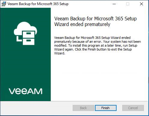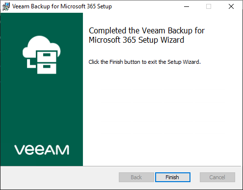 9.Click Finish on the Completed the Veeam Backup for Microsoft Setup Wizard page.