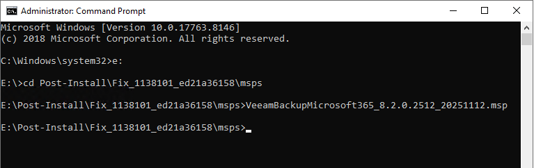 3.Update the controller using VeeamBackupMicrosoft365_8.2.0.2512_20251112.msp.