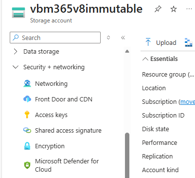 40. On the newly created storage account page, under Security + networking, select Access keys.