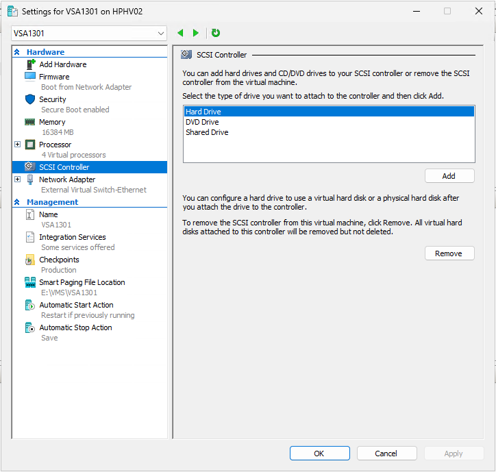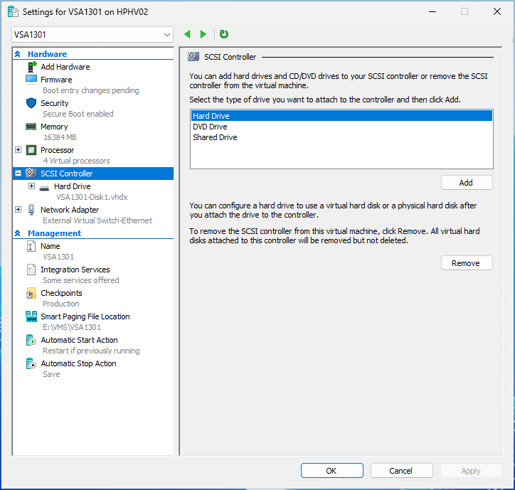 14.Select SCSI Controller, select Hard Drive and click Add.