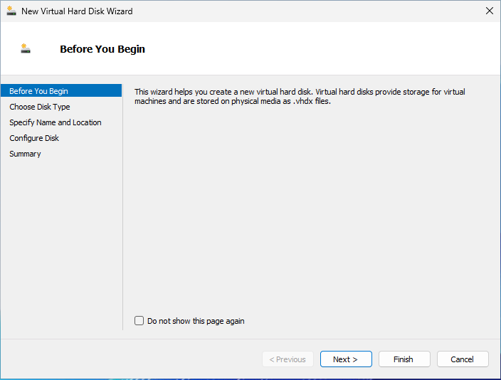 20.Click Finish on the Completing the New Virtual Hard Disk Wizard page.