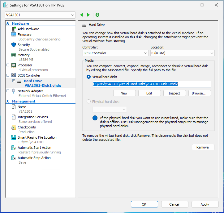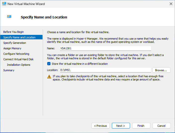 6.On the Specify Name and Location page, type the virtual machine name in the Name field.