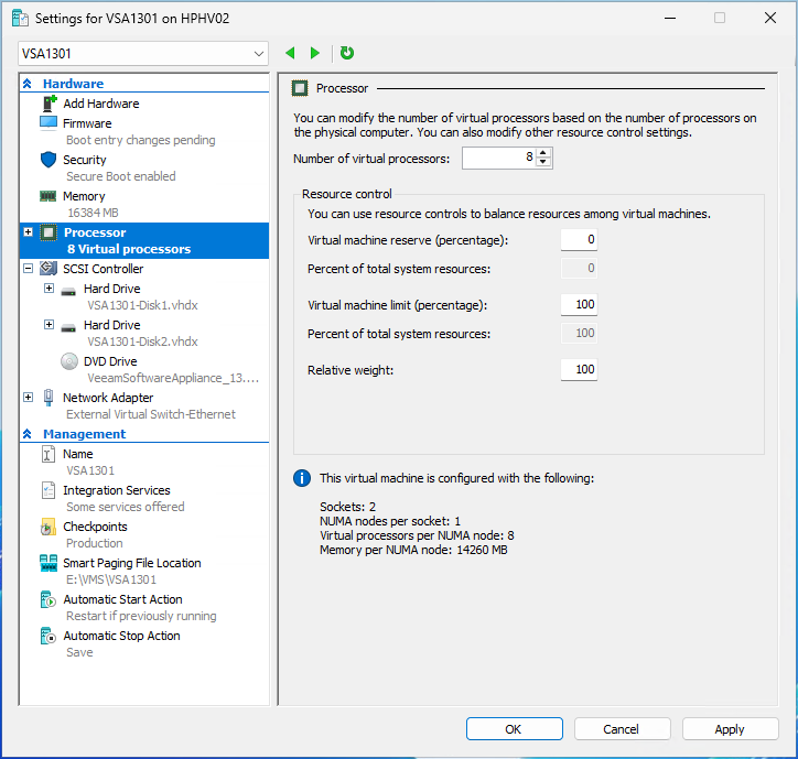 32.Select Processor, change the Number of virtual processors to 8 and click Apply.