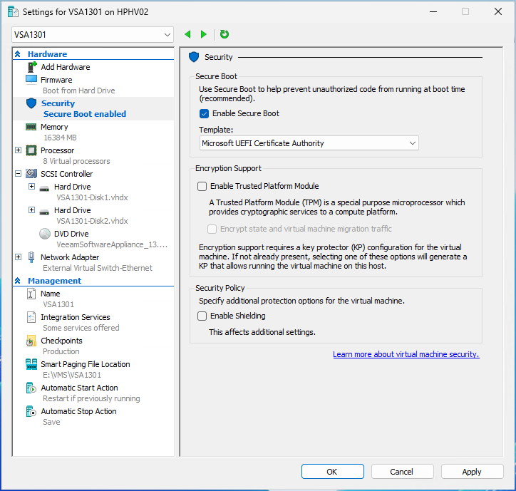 34.Select Security, select Enable Secure Boot and change the Template to Microsoft UEFI Certificate Authority.
