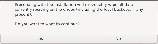 40.The proceeding with the installation will wipe all data, click Yes to continue.