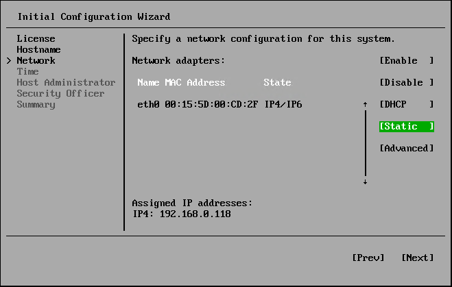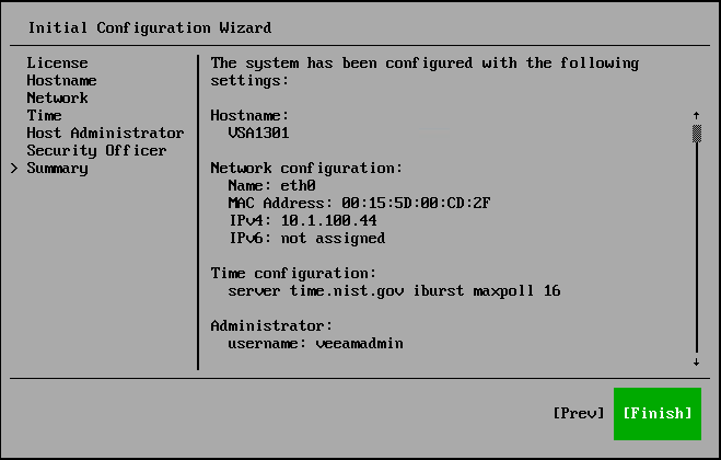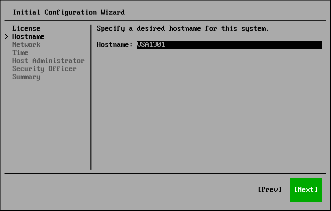 43.Type the VSA server name in the Hostname field, select Next and press Enter.