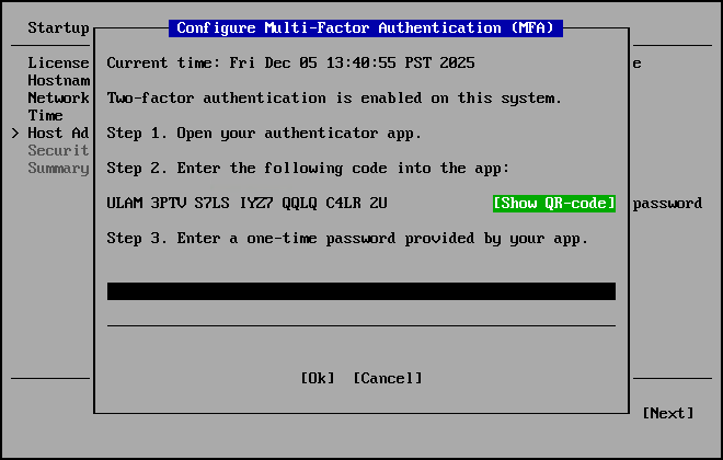 52.Type a one-time password provided by your app, select Ok and press Enter.