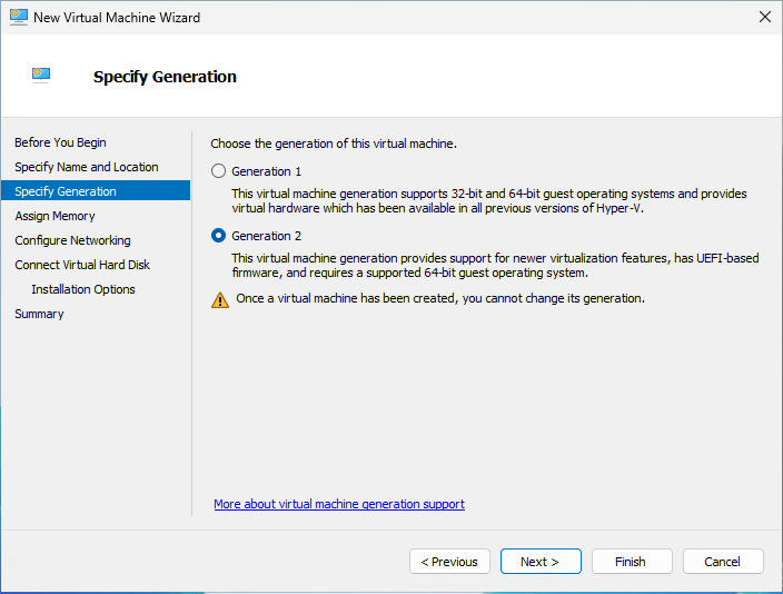 8.Select Generation 2 on the Specify Generation page and click Next.