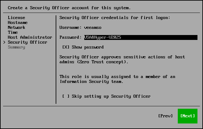 54.On the Security Officer page, type the password in the Password field for veeamso, select Next and press Enter.