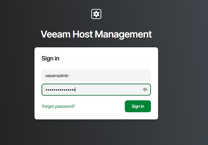 60.Ensure you can use it to log in to the Host Management console and continue configuring Veeam Software Appliance.
