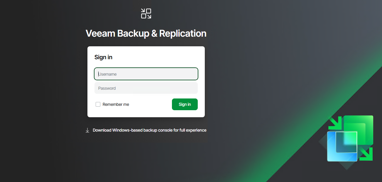 65.Ensure you can use it to log in to the Veeam Backup & Replication web UI and continue configuring Veeam Backup & Replication.