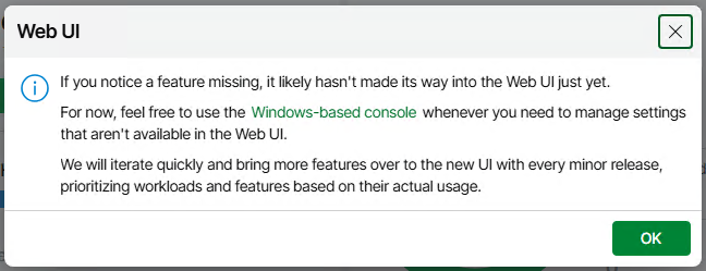 The Veeam Backup & Replication web UI has certain limitations compared to the full Veeam Backup & Replication console.