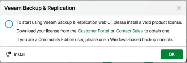 The Web UI supports license base only. You need to use a Windows-based backup console if you are a Community Edition.